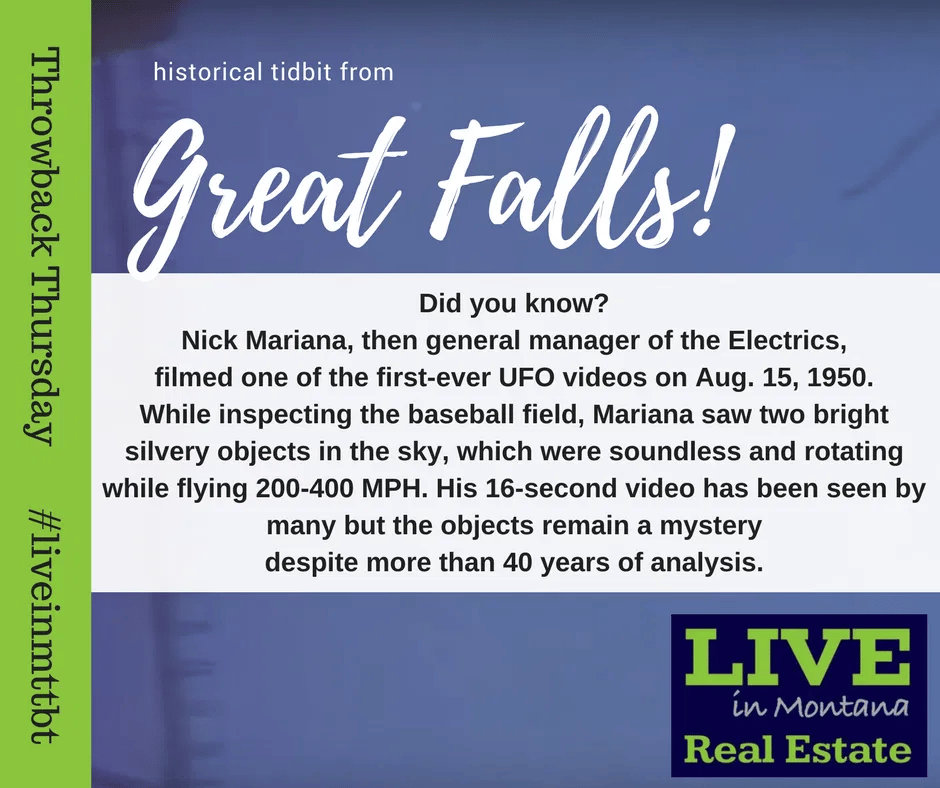 #liveinmttbt #greatfallsmt #montanahistory #historyofmontana #mthistory #historytidbit #ufo #ufosightings #ufovideo